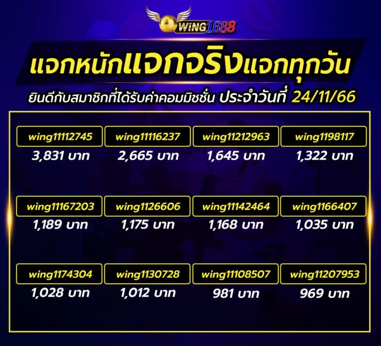 ยินดีกับสมาชิกได้รับค่าคอมมิชชั่นประจำวันที่ 24/11/66