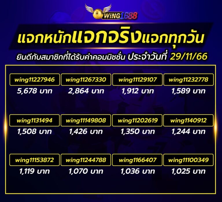 ยินดีกับสมาชิกได้รับค่าคอมมิชชั่นประจำวันที่ 29/11/66
