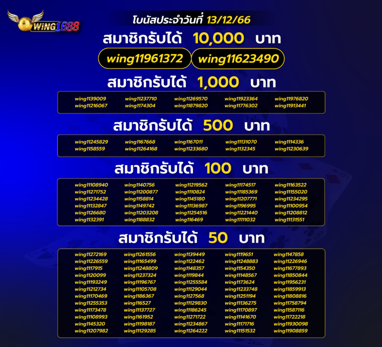 ยินดีกับสมาชิกได้รับค่าคอมมิชชั่นประจำวันที่ 13/12/66
