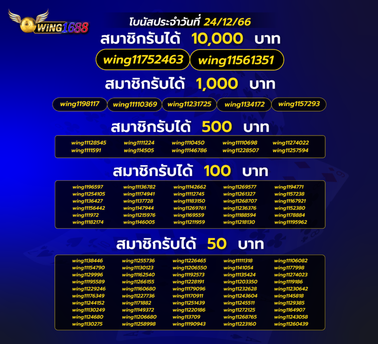 ยินดีกับสมาชิกได้รับค่าคอมมิชชั่นประจำวันที่ 24/12/66
